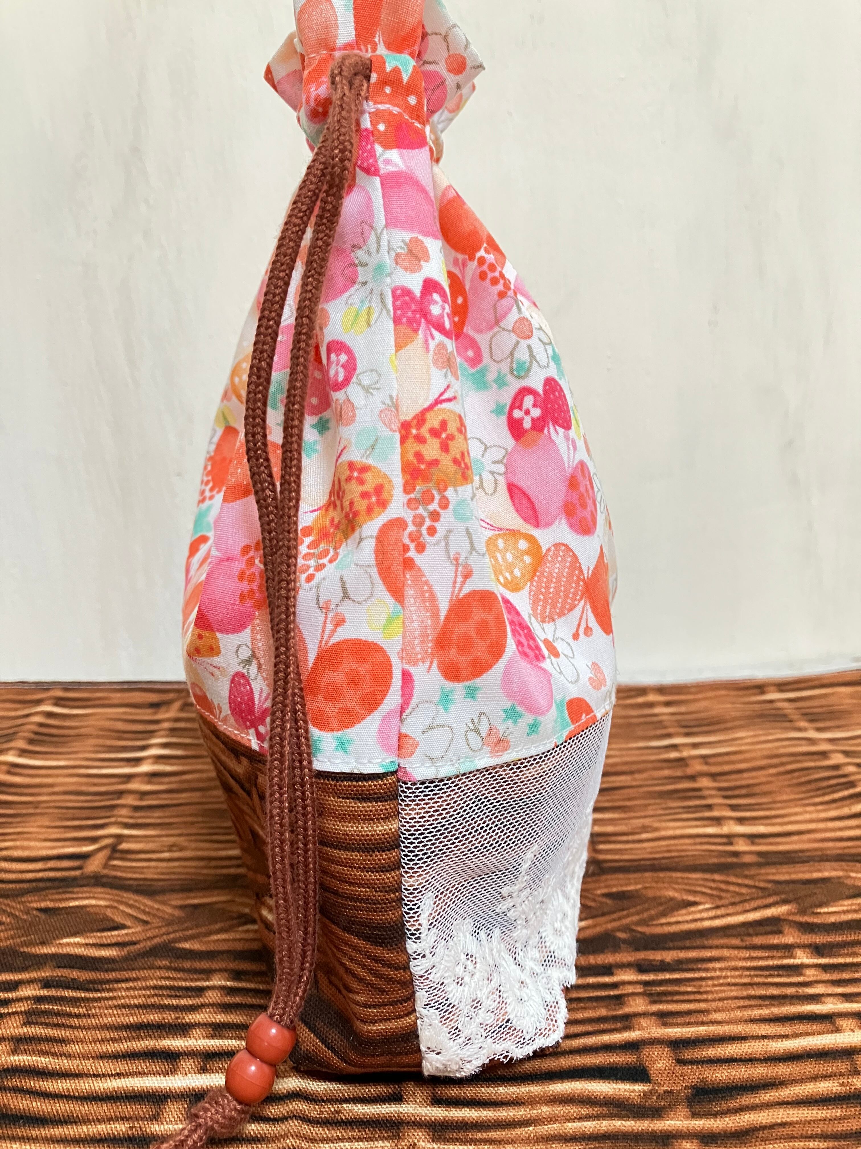 こちらは、チョウといちご柄とバスケット柄が可愛い♡コップ袋とランチマットのセットになります!