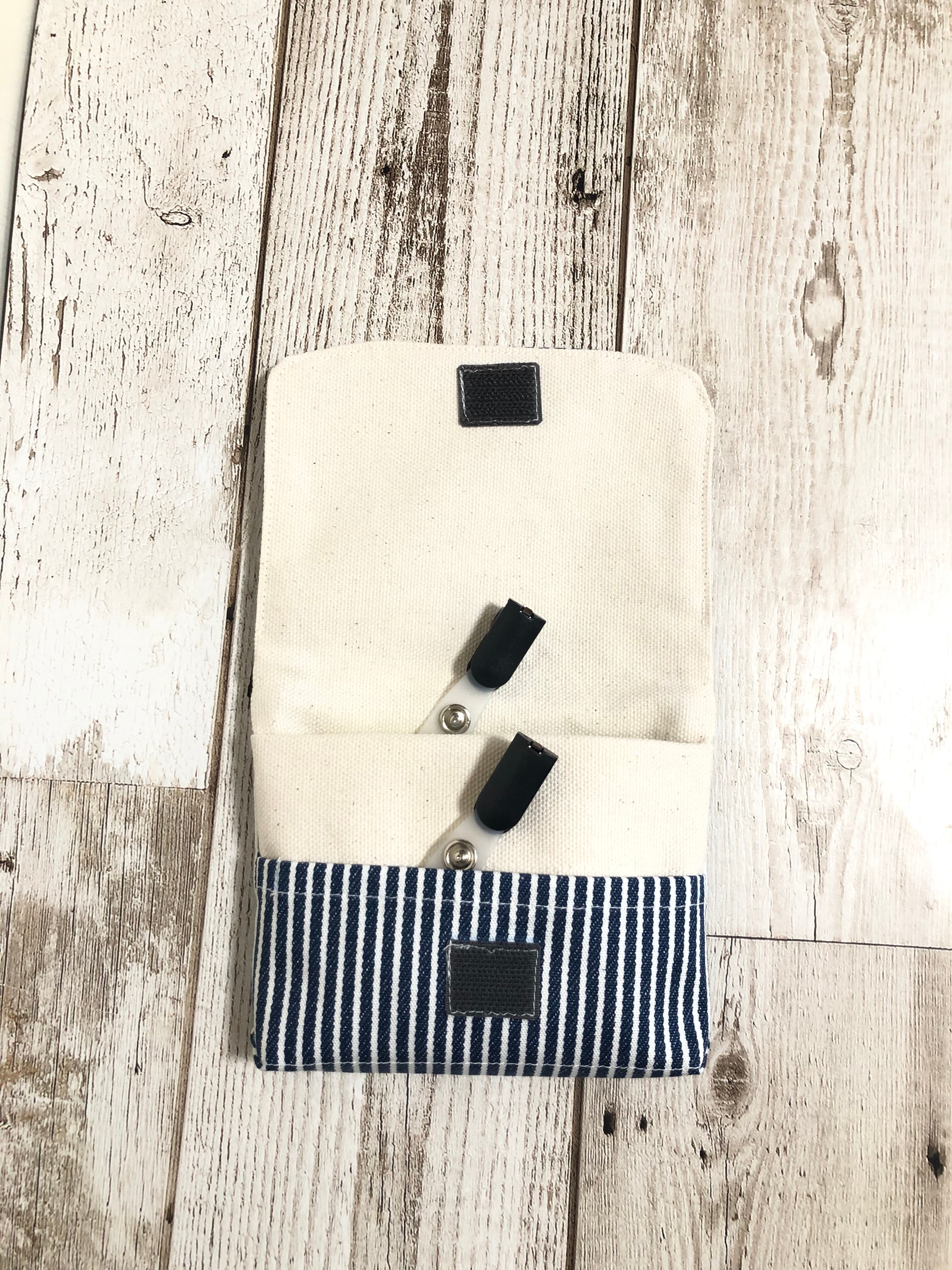 こちらは、ヒッコリーデニム調のストライプが、シンプルオシャレでカッコいい移動ポケットになります!
