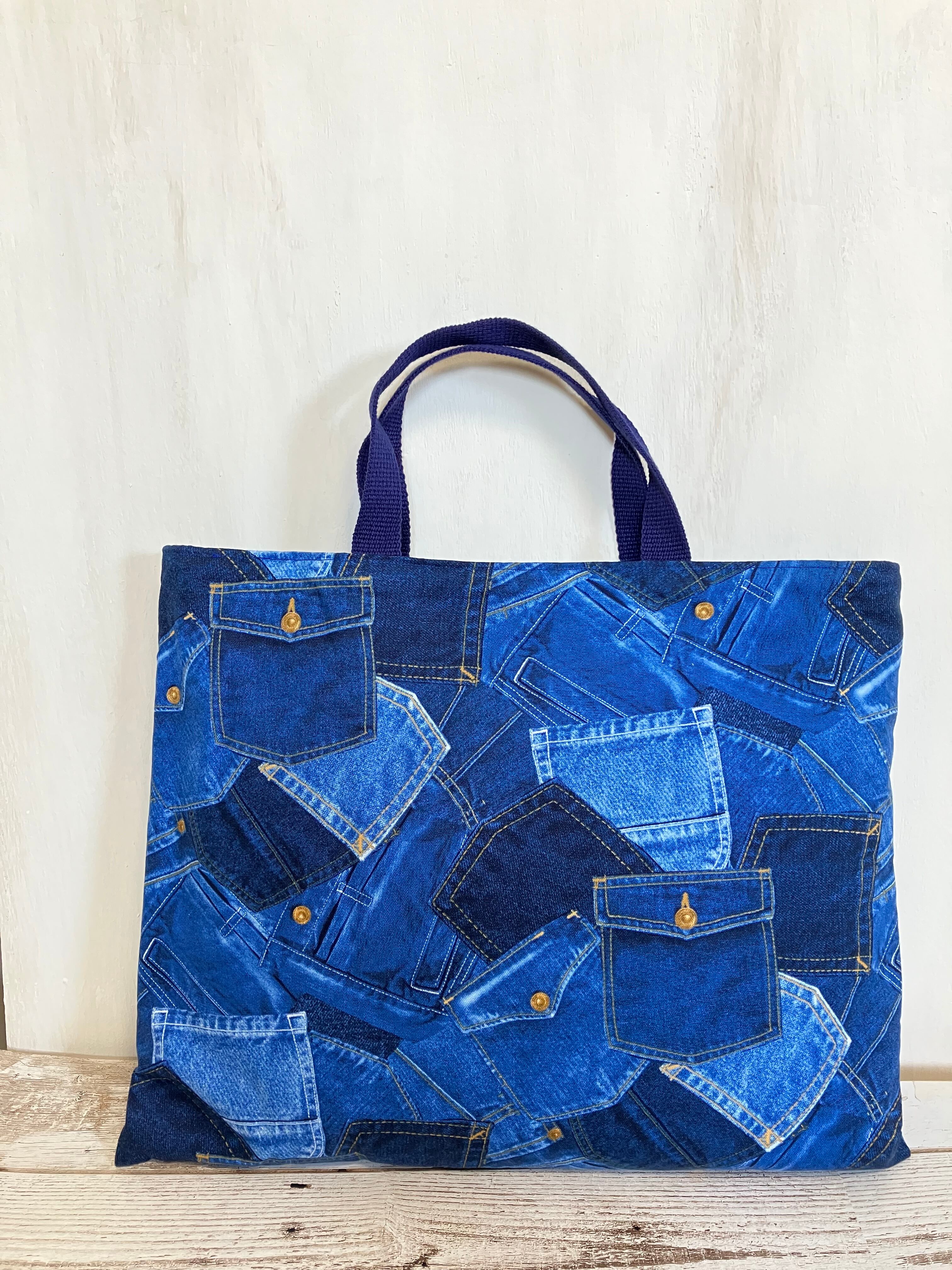 デニムポッケ柄が、オシャレなレッスンバックになります!
