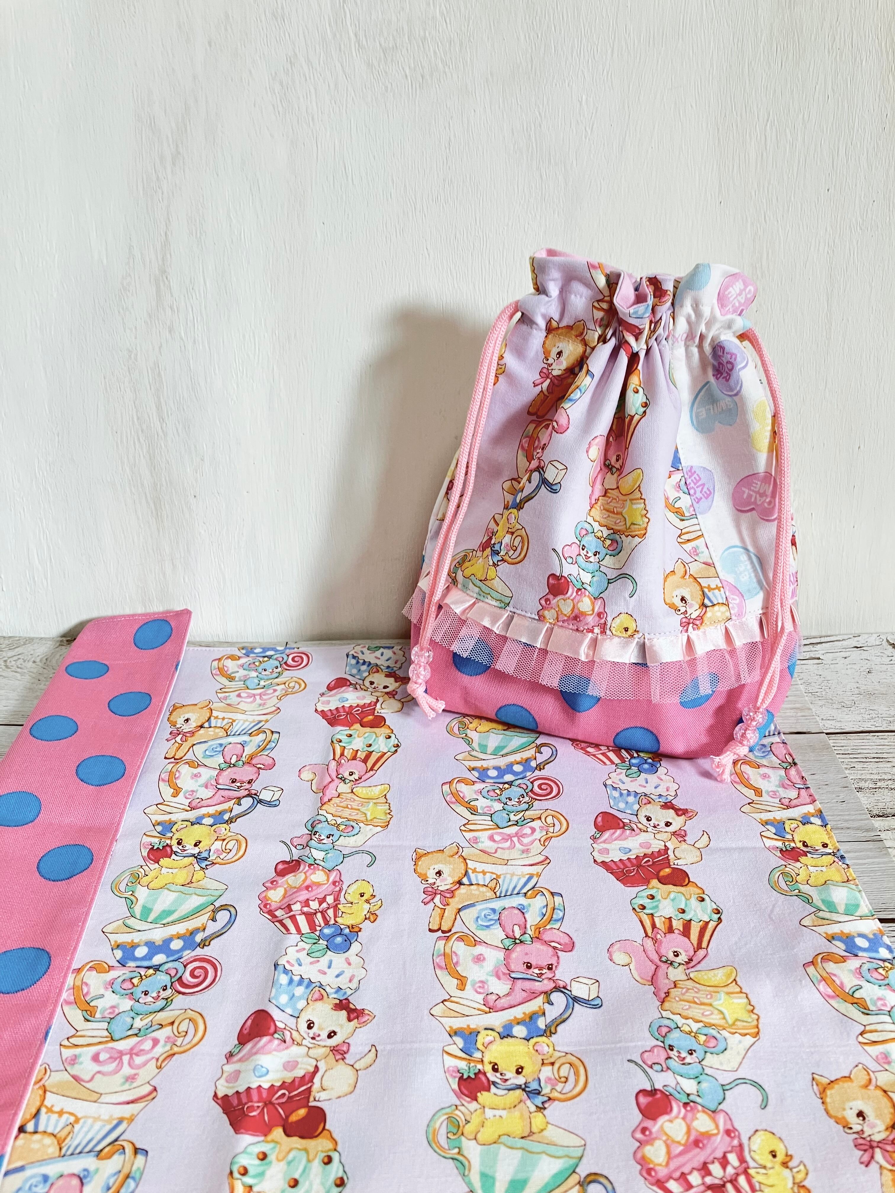 こちらは、レトロなアニマル柄が可愛い♡コップ袋とランチョンマットのセットになります!